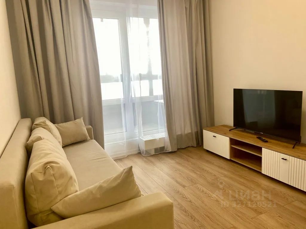Большая кухня полностью оборудована современной техникой, посудой и обеденным столом со стульями в скандинавском стиле — готовьте вкусные блюда и наслаждайтесь уютными ужинами. С заботой о вас предоставляем велком набор. Для дополнительных гостей есть просторный диван, а напротив — телевизор для вашего досуга.