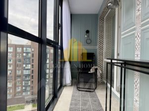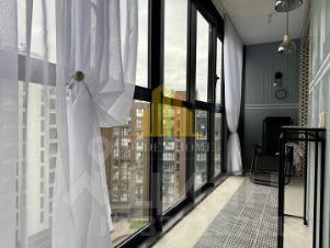 Балкон на всю длину квартиры с 2мя дверями ( в кухню и комнату))) позволяет поставить шезлонги и консольный столик для отдыха , оснащен розетками, подсветкой как яркой так и приглушенной.