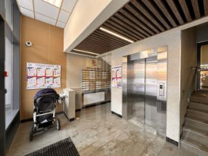 Локация очень зеленая, рядом с домом лес, куда можно выйти на прогулку. Также имеется детская площадка в закрытом дворе, за домом есть футбольная площадка.