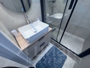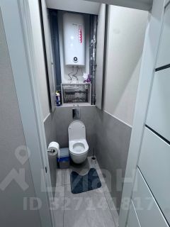 Санузел раздельный.В первом помещении расположен душ,зеркало и тумбочка со светильниками, так же напротив зеркала есть шкаф,в который можно поставить корзину для белья и расположить душевые принадлежности. Во второй комнате туалет и скрытый за шкафчиками водонагреватель с маленькими полочками.