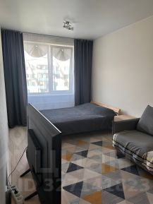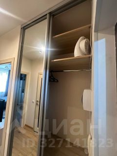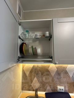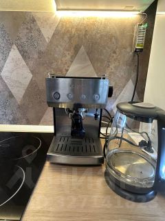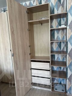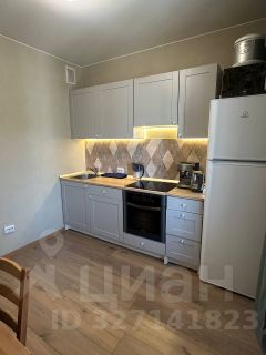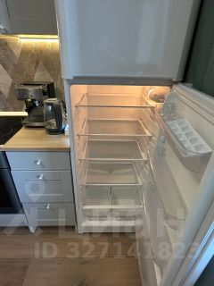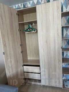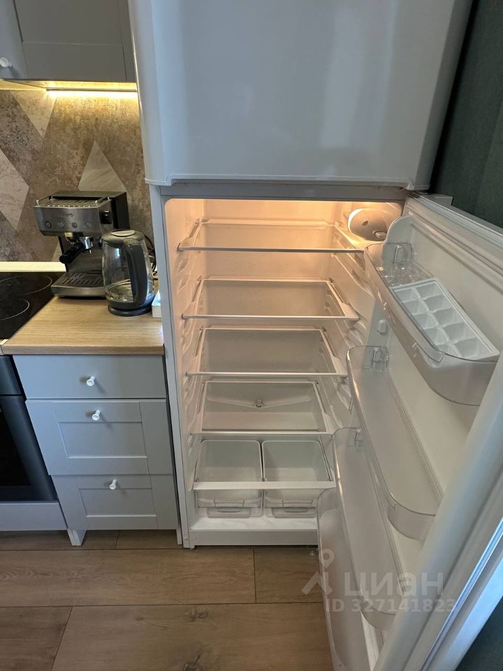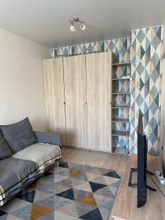 В комнате установлен удобный диван и вместительный шкаф. Из мебели также есть обеденный стол и стулья. В кухне современная бытовая техника: холодильник, варочная панель, духовой шкаф и микроволновая печь. Ванная комната совмещенная, оснащена душевой кабиной и стиральной машиной.