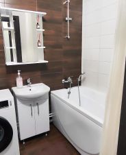 Квартира полностью готова для комфортного проживания — выполнен качественный ремонт. Просторная кухня площадью 15 кв. м оснащена всем необходимым: холодильником, посудомоечной машиной и современной мебелью. В комнате также имеется мебель, а для вашего досуга предусмотрен телевизор. Ванная комната оборудована ванной, а также есть стиральная машина, водонагреватель