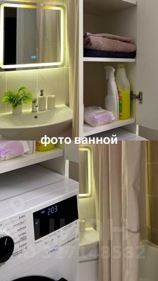 Ванная: стиральная машина с паром и Bluetooth, шкафы для хранения, зеркало с подсветкой и обогревом, акриловая ванна, сильный напор воды без перебоев