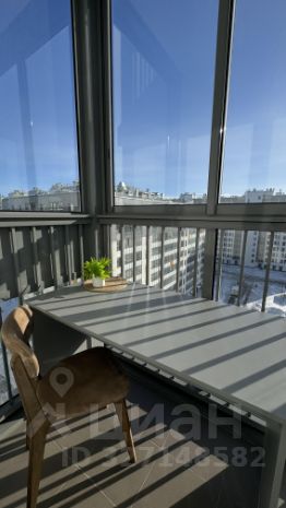 Балкон: застеклённый, светлый, оборудовано рабочее место. Можно использовать как кабинет или доп. зону хранения