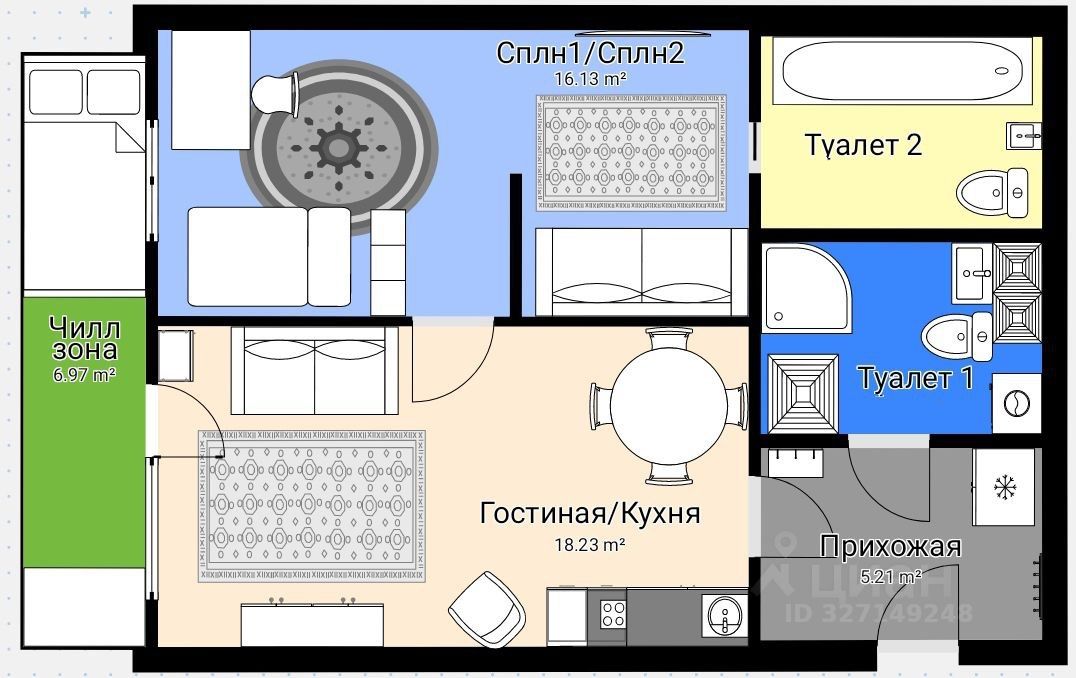 3) Квартира имеет 5 зон: