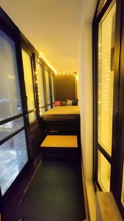 5-Шикарная зона отдыха на балконе (Оборудована ложа с панорамным видом на город, во 2й половине балкона стоит стол)