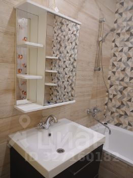 В ванной комнате: стиральная машина с сушкой, ванная, раковина, зеркальный шкаф.