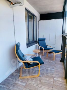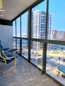Огромная лоджия площадью 10 кв.м. с окнами в пол с подогревом — прекрасное место для отдыха или медитации.
