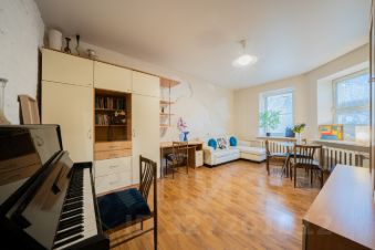 Мебель: шкафы, кровать, диван, обеденный стол, пианино.