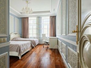 Детские комнаты полностью оборудованы мебелью и системами хранения, а мастер-спальня располагает собственной гардеробной и SPA-зоной с гидромассажной ванной и золотой душевой кабиной.