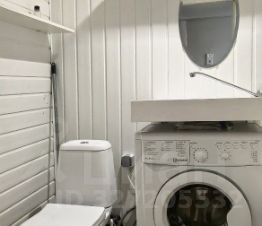 В ванной: полки для хранения вещей, новая раковина и новая стиральная машина. Установлены счетчики воды.