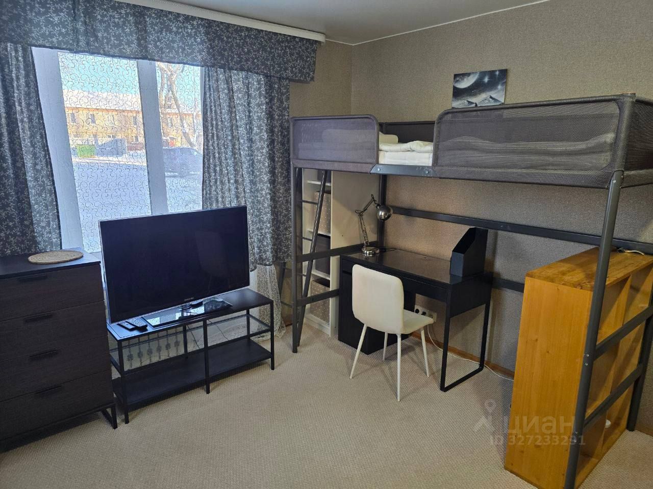 * Мебель: кровать-чердак (подойдёт для ребёнка или взрослого), есть вся необходимая мебель для комфортного проживания.