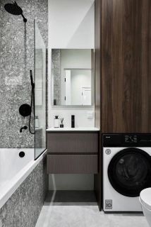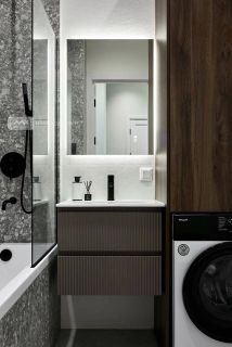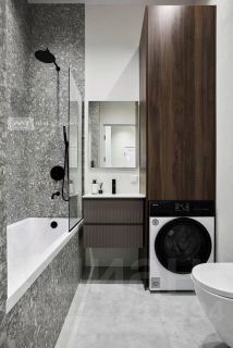 В санузле установлена система контроля протечки воды с управлением со смартфона, а так же стиральная машина с возможностью сушки белья.
