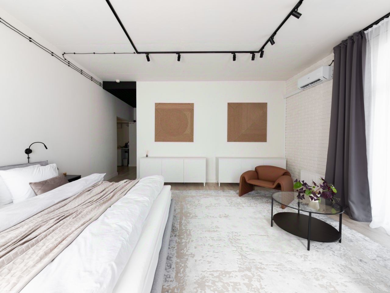 Апартаменты имеют просторную планировку, балкон. Новый ремонт. В здании есть подземный паркинг, фитнес-центр, кафе, салон красоты.
