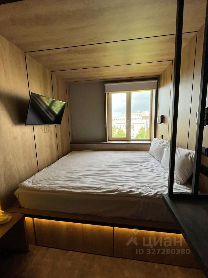 Уютная большая кровать с хитрыми ящиками для одежды, стильная кухня, холодильник, ТВ напротив и супер-удобный душ — всё на месте для вашего комфорта!