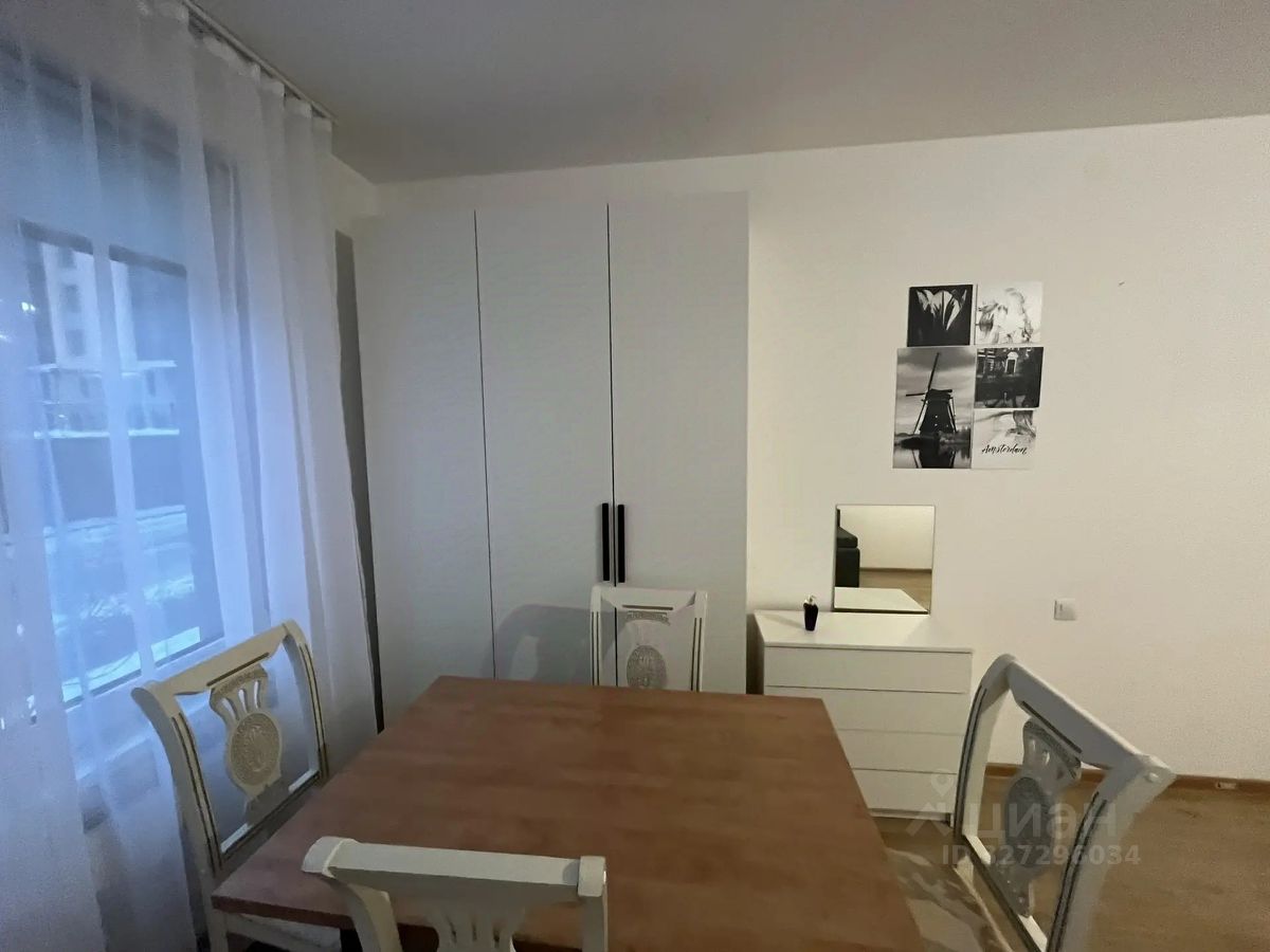 Сдается уютная студия площадью 24,1 кв. м в современном монолитном доме 2018 года постройки. Квартира находится на первом этаже из десяти, с высотой потолков 2,7 метра. Всего в доме один пассажирский и один грузовой лифт. До метро можно дойти всего за 5 минут пешком, что делает расположение квартиры особенно удобным.