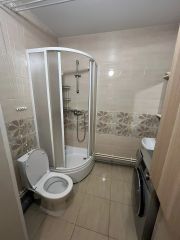 В квартире сделан качественный евроремонт. Пространство студии грамотно организовано, есть все необходимое для комфортного проживания: удобная мебель на кухне и в комнате, холодильник и стиральная машина. Санузел совмещенный, сделан современный ремонт, установлена душевая кабина. Окна выходят во двор, что обеспечивает тишину и спокойствие.