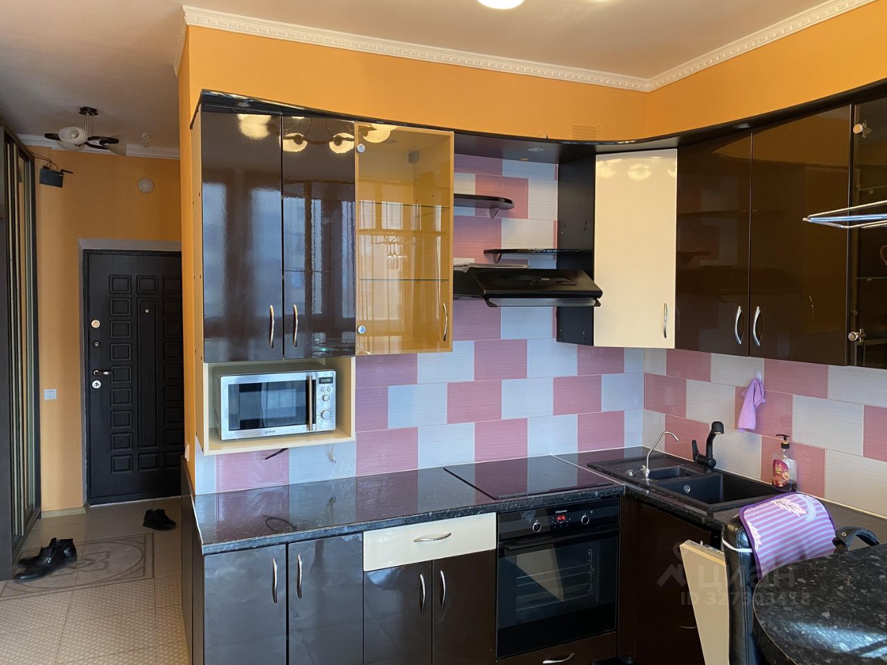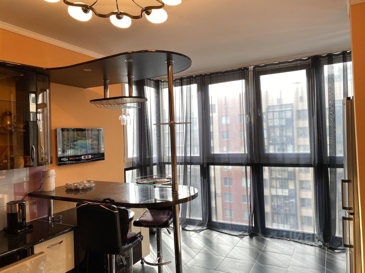 Квартира в отличном состоянии с евро-ремонтом и стильной мебелью. В наличии всё необходимое для комфортного проживания, включая посудомоечную машину. Дополнительно установлен вместительный шкаф-купе во всю ширину комнаты, который не попал на фото.