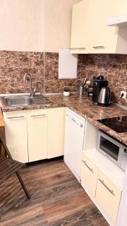 полностью оборудованная кухня (электроплита, микроволновая печь, холодильник, посуда);