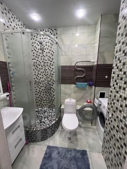Квартира полностью меблирована и укомплектована необходимой техникой. В наличии холодильник, телевизор и стиральная машина. На кухне и в комнате есть вся необходимая мебель. Ванная комната оборудована, душевой кабиной