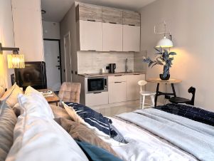 Сдается стильная и уютная квартира-студия (21 м2) в новом ЖК Морская Набережная на Васильевском острове.