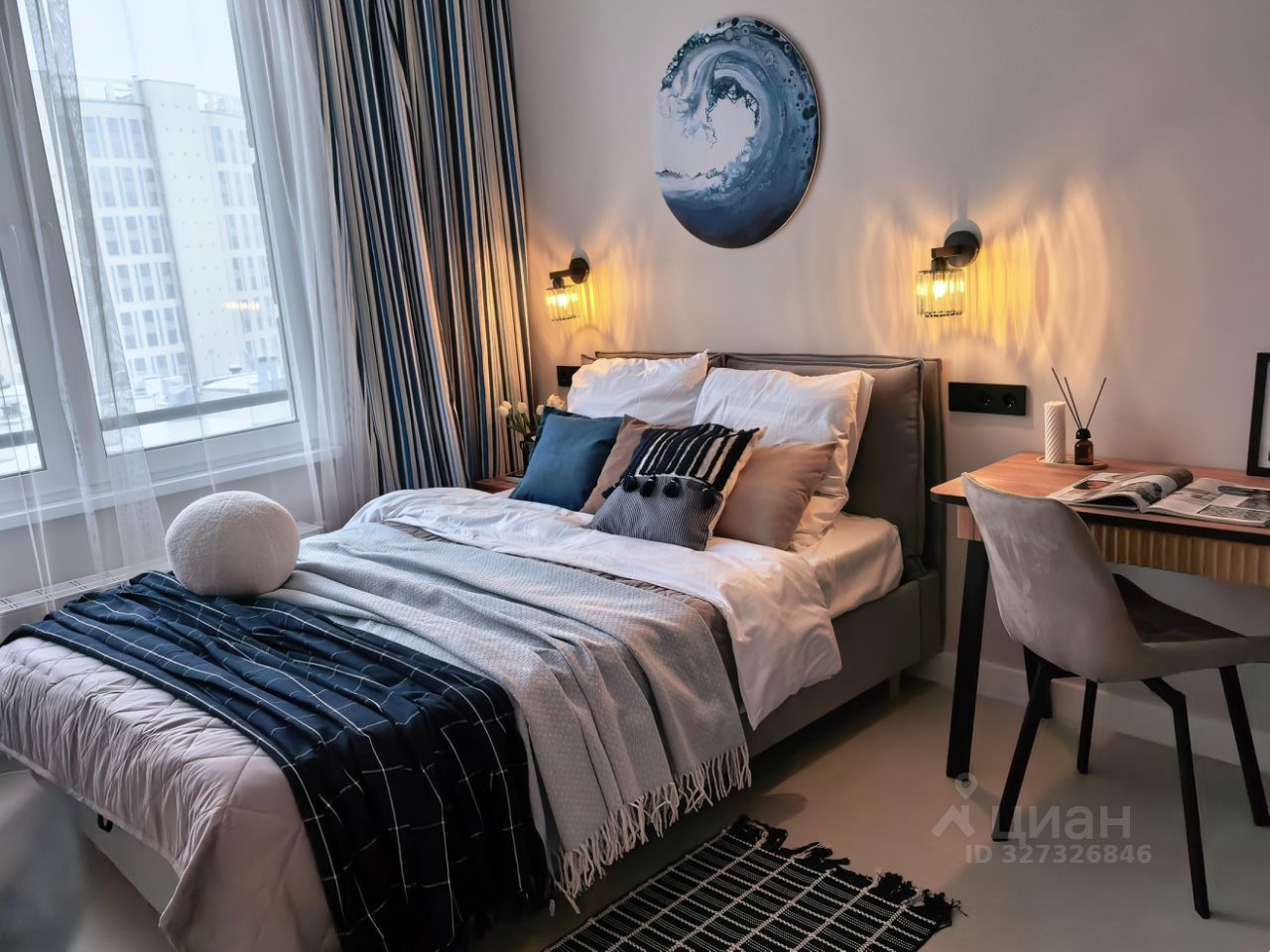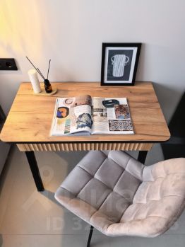 Вся необходимая мебель: большая кровать с ортопедическим матрасом и подъемным механизмом, много мест для хранения вещей, компьютерный и туалетный столики