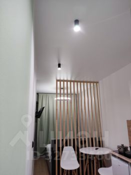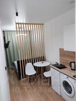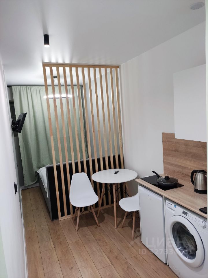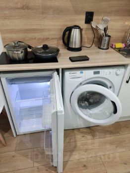 В студии выполнен дизайнерский ремонт, который подчёркивает уникальность и уют пространства. Комната обставлена необходимой мебелью, а кухня оборудована всем необходимым для комфортного проживания. В наличии холодильник, телевизор и стиральная машина. Санузел совмещённый, с современной душевой кабиной. Окна выходят во двор, поэтому в квартире всегда тихо и спокойно.