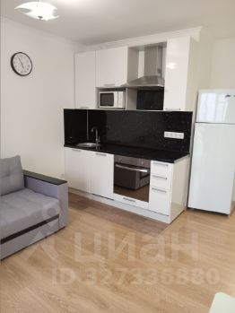 Студия полностью готова к проживанию: в наличии вся необходимая мебель на кухне и в комнате. Из техники есть холодильник, посудомоечная и стиральная машины, микроволновка, духовка. Ванная комната оборудована душевой кабиной. Приятным дополнением служит наличие большой лоджии.