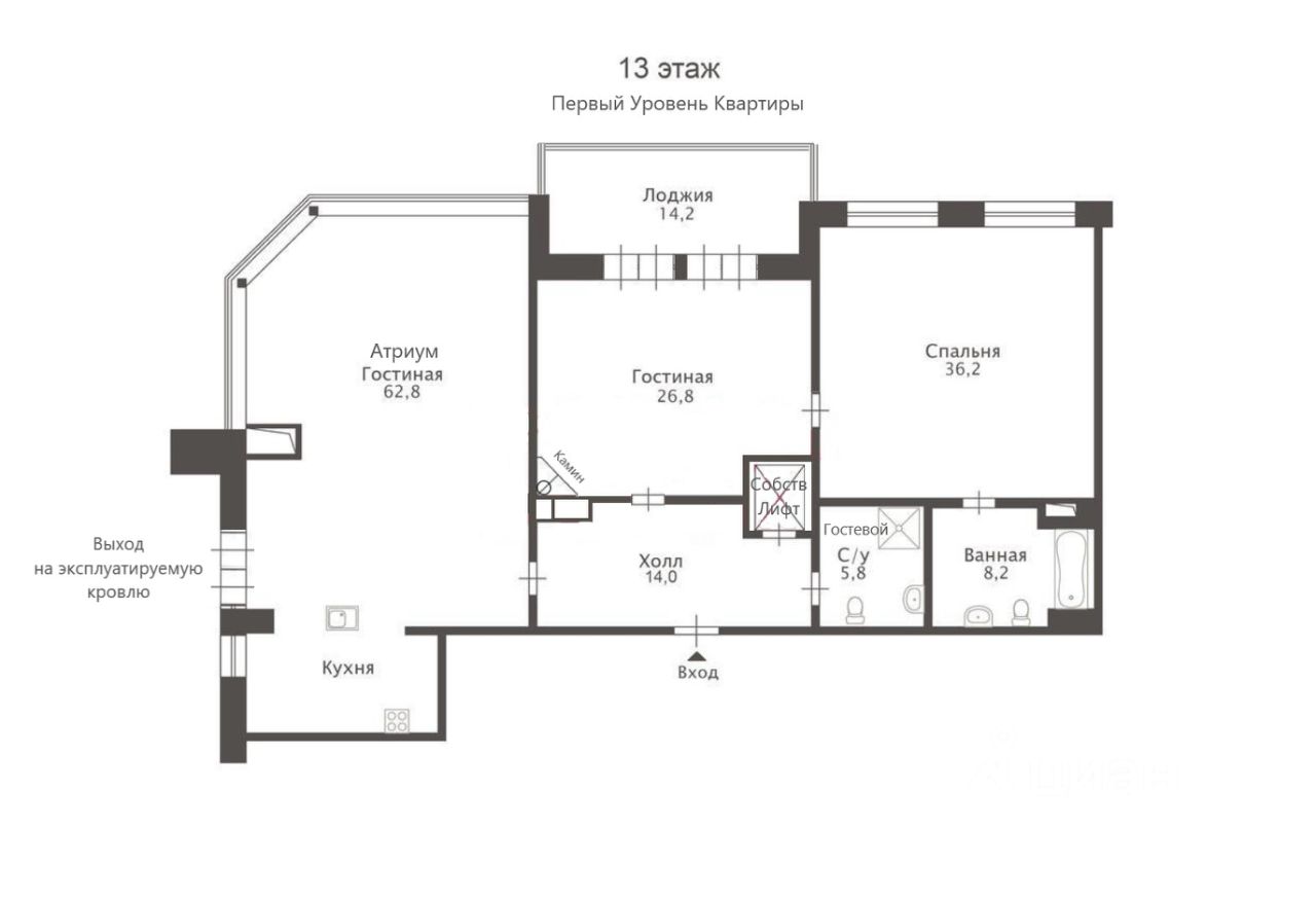 • Два уровня (13 и 14 этажи) с отдельными входами на каждый уровень и собственным внутриквартирным лифтом — идеально для большой семьи или жизни в разном ритме