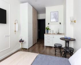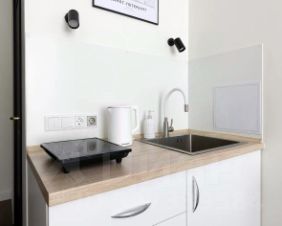 До центра 25мин.ОСНАЩЕНИЕ:двуспальная кровать с ортопедическим матрасомполотенца, чистое постельное белье, фен LСD Smart ТVскоростной Wi-Fiмини- кухня с варочной плитой, всей необходимой посудой и кухонными принадлежностямиСВЧ печь В общем холле:Стиральная машина, а также утюг с гладильной доской и сушилкой.