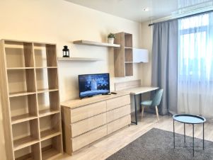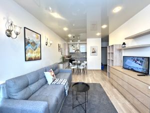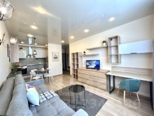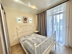 БЕЗ КОМИССИИ Прямая аренда от собственника дизайнерской евродвушки с евроремонтом, панорамным остеклением и прекрасным видом на город, площадью 45 кв.м., в кирпично-монолитном новом жилом комплексе бизнес класса Лондон Парк. Комфортная, красивая и светлая двухкомнатная квартира полностью оборудована современной техникой (холодильник, ЖК телевизор, микроволновая печь, стиральная машина, пылесос, электрочайник и др.) и мебелью в скандинавском стиле, ремонт выполнен из высококачественных материалов под хозяина. Оригинальная планировка. Пол выведен в один уровень, ламинат под дерево и керамический гранит. Кабельное телевидение более 100 каналов, WIFI, домофон. Просторная ванная комната с большой душевой кабиной (100*100), душевой панелью и унитазом с инсталляцией Geberit. Натяжные потолки и зональное освещение по всей квартире. Лоджия с панорамным остеклением и видом на город. Солнечная сторона.