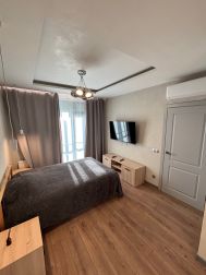 В квартире сделал Новый Дизайнерский евро ремонт. В прихожей, на кухне, в санузле кафель, пол с подогревом. В комнате и на кухни телевизор, спальный гарнитур, кондиционер, на полу паркетная доска. На кухне, вся встроенная мебель, посудомоечная машина, электрическая плита, духовой шкаф, микроволновая печь, встроенный холодильник, кухонный стол. В санузле, стиральная машина, душевая кабина, унитаз, мойка.