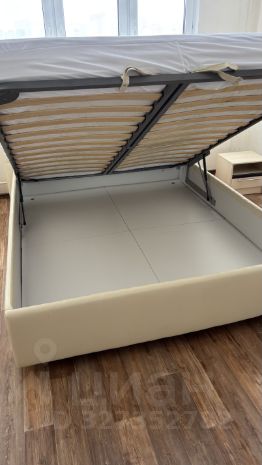 Большая спальная 18 кв м с двуспальной кроватью с подъемным механизмом и ортопедическим матрасом. Вместительный шкаф для хранения вещей и комод.