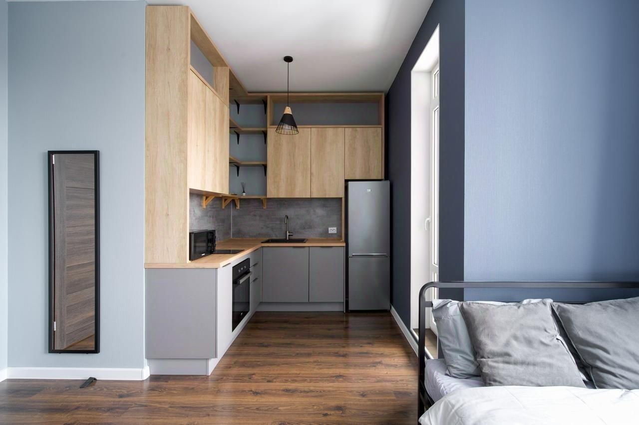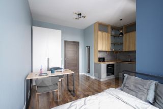 Квартира-студия с удобной зонацией на зону кухни и спальню, высотой потолка 3 метра и видом на самые красивые закаты в городе.