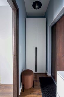 Отделка и оснащение в современном стиле, предусмотрено много мест хранения и разноуровневое освещение.