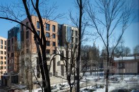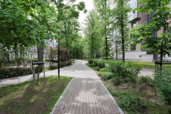 В парадных - бесшумные лифты и просторные холлы, под каждым домом - подземный паркинг (имеется свое машиноместо за доп. стоимость). Территория комплекса огорожена, доступ контролируется диспетчером и охраной. Придомовая территория благоустроена по уникальному ландшафтному проекту и концептуально дополняет соседство с садом Смольного собора и сквером "У Невы". В парке сохранены все взрослые деревья, поэтому дома расставлены в нестрогом порядке, с учетом парковых посадок.