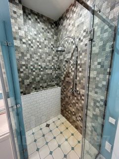 - Большая ванная комната с окном, душевой, ванной. Стиральная машина с функцией сушки.