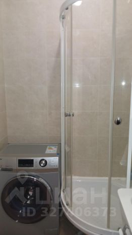 В ванной установлена душевая кабина, стиральная машина. Зеркало с подсветкой придает ощущение стиля и уюта.