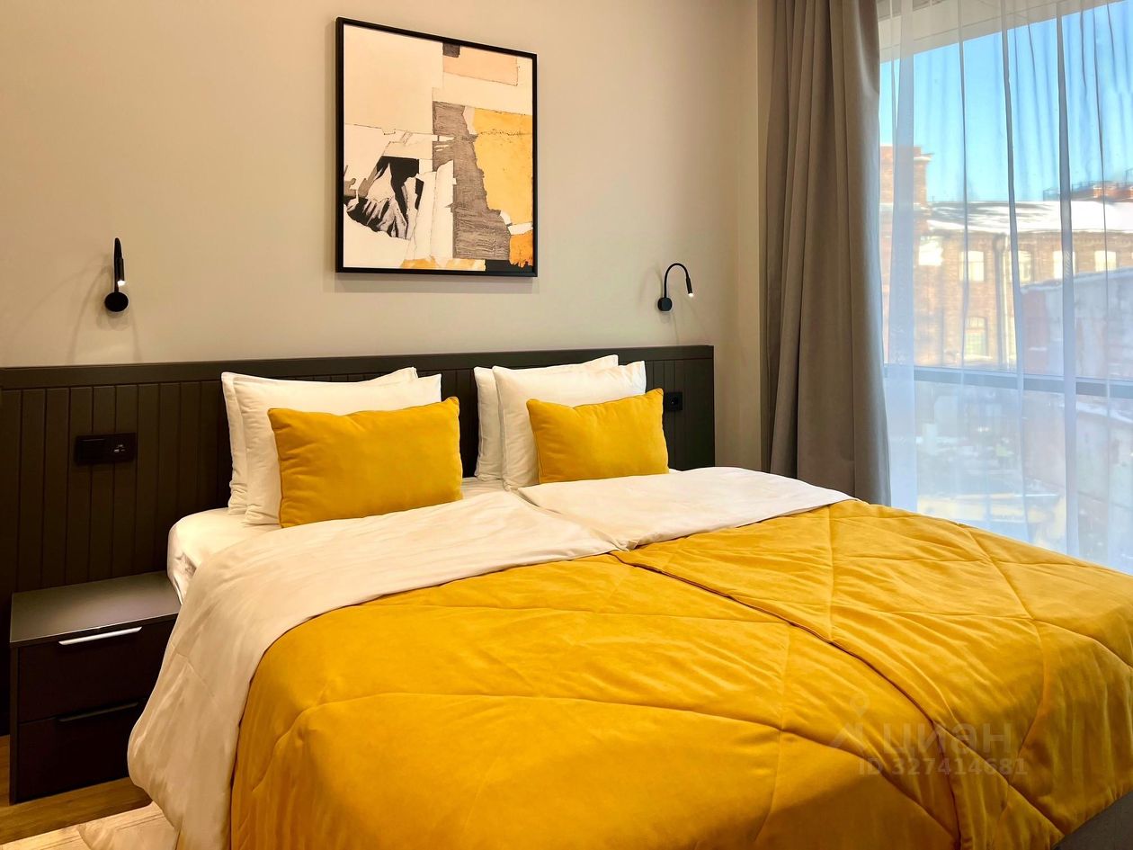 - светлая, уютная, полностью оснащенная студия (27 кв.м.) с панорамными окнами в пол. Потолок - 3 м.