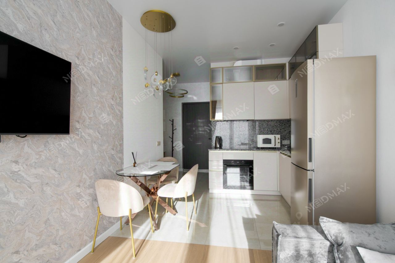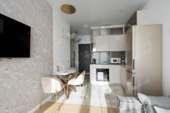 Квартира с дизайнерским ремонтом. Оснащена всей необходимой техникой для комфортной жизни. Предусмотрены вместительные зоны для хранения-шкаф и гардеробная. Кухня с гостевой зоной, просторная спальная комната. Совмещенный санузел с душем. Окна во двор. Возможно приобретение напольного кондиционера.