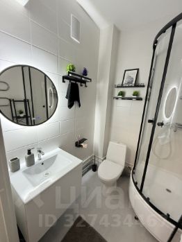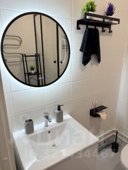 В ванной атмосферное зеркало с подсветкой и датчиком температуры.