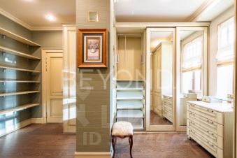 Дом включает четыре уровня с лифтом и объединяет две автономные функциональные половины. На цокольном уровне — SPA-зона с бассейном, сауной, хаммамом и холодильной комнатой для хранения меховых изделий.