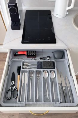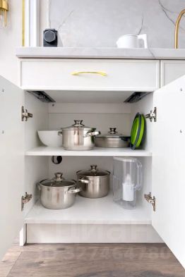 Кухня со всем необходимым. Индукционная плита, холодильник, чайник, микроволновая печь, вся необходимая посуда и кухонные принадлежности;