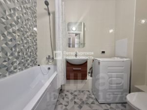 Санузел совмещенный, оформлен в светлых тонах. В ванной установлена стиральная машина.