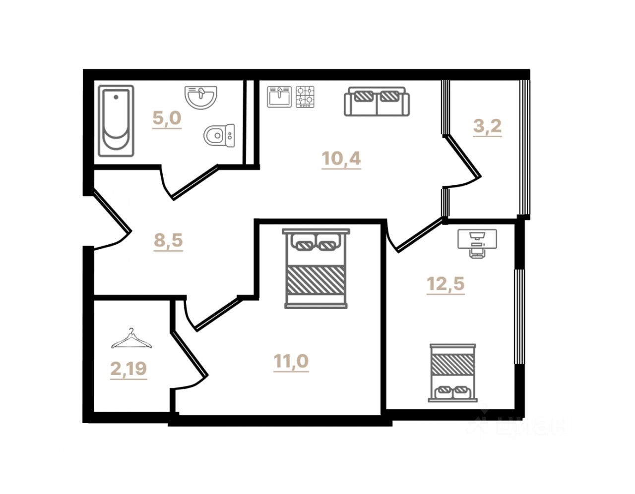 — Планировка просто мечта: квартира зонирована на полноценную спальню с гардеробом и отдельную детскую комнату — идеально для молодой семьи или пары с ребёнком.