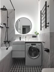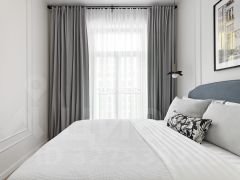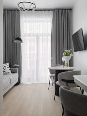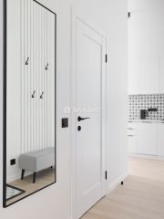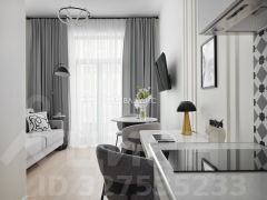В квартире выполнен дизайнерский ремонт в серых оттенках. Все смотрится очень стильно и лаконично.