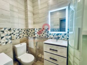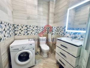 Санузел совмещен, оборудован душевой кабиной, а стиральная машина обеспечит дополнительные удобства.