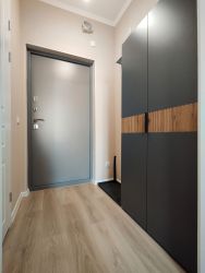 Полный комплект мебели и техники: кухня, варочная панель, духовой шкаф, вытяжка, холодильник, стиральная машина, диван, комод, ТВ, шкаф в прихожей.