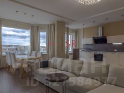 - просторная гостиная объединенная с кухней и панорамным видом на набережную,