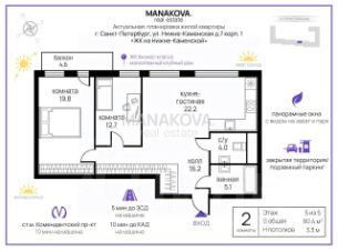 2 изолированные комнатыбольшая кухня-гостиная с панорамными окнамивысокие потолки 3,2 мбольшой балкон с зоной барбекюгардеробная и встроенные шкафы